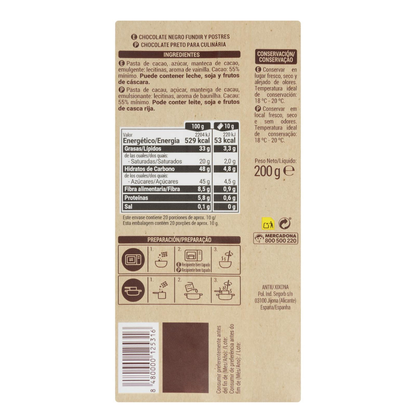 Sütéshez és olvasztáshoz étcsokoládé 200g Hacendado