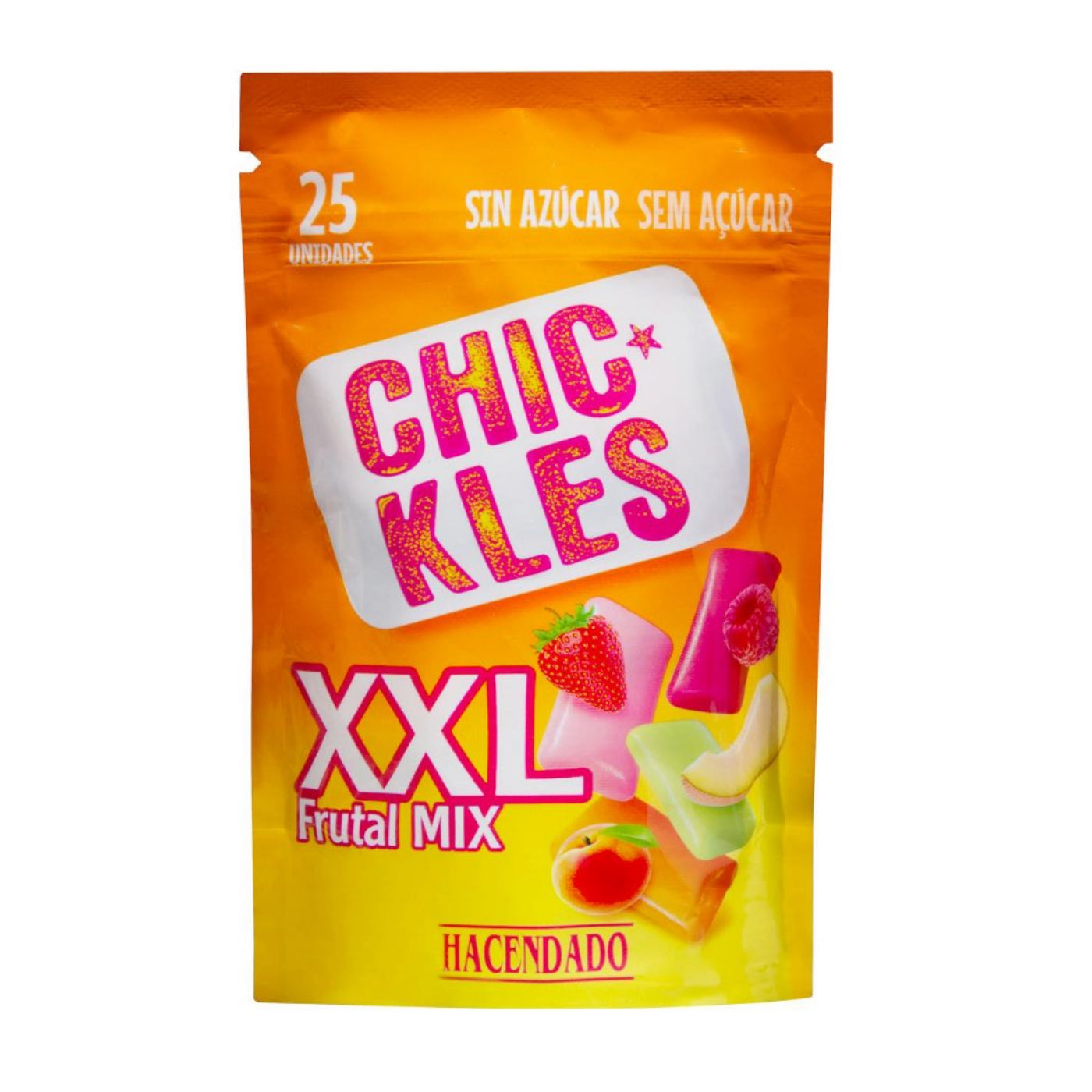 Glutén- és cukormentes vegyes gyümölcsös rágógumi (dinnye, eper, barack, málna) XXL