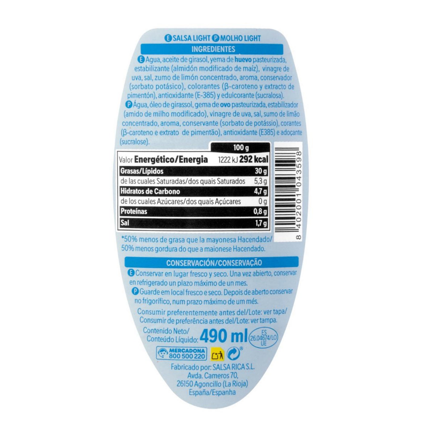 Glutén- és tejmentes light majonéz