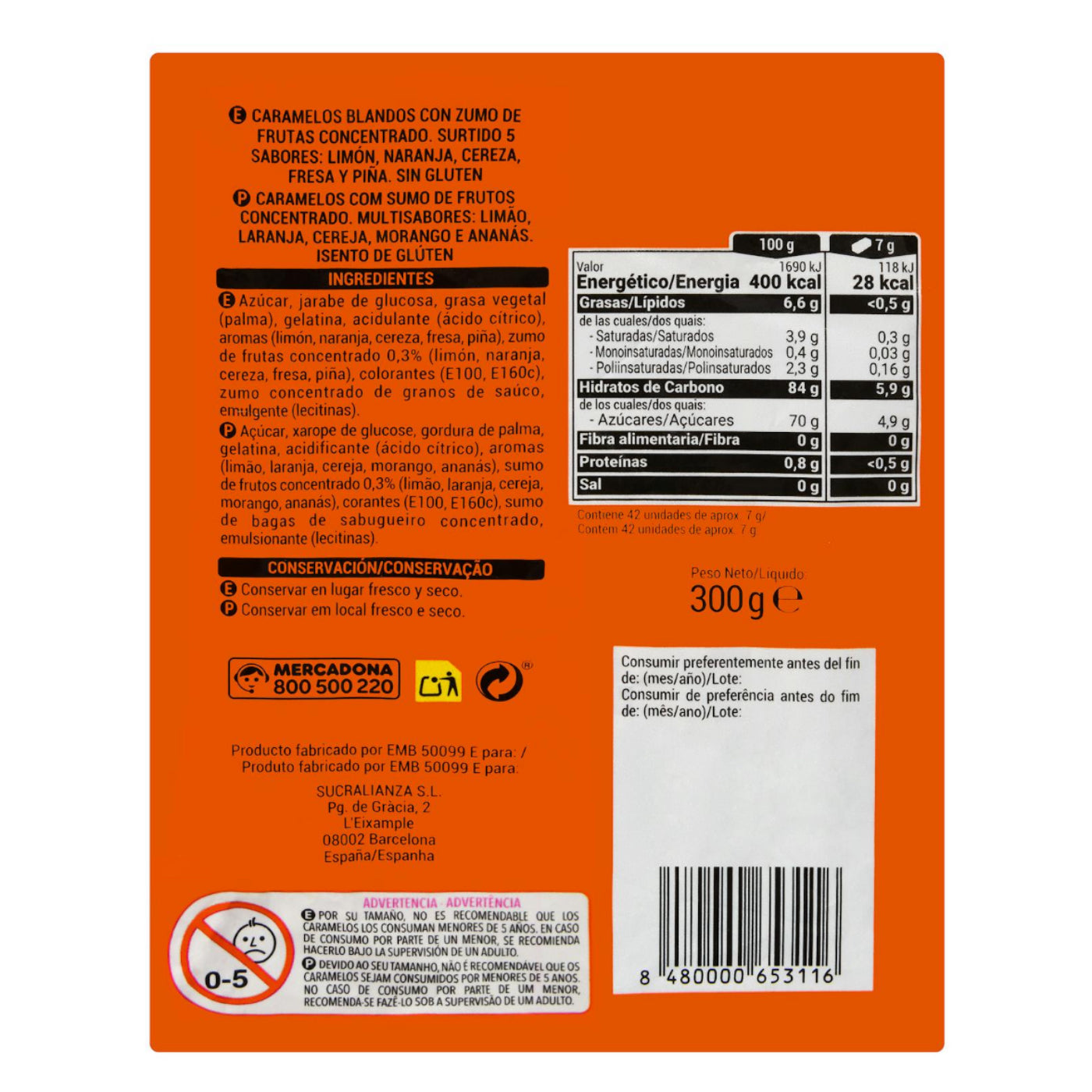 5 íz: citrom, narancs, cseresznye, eper, ananász