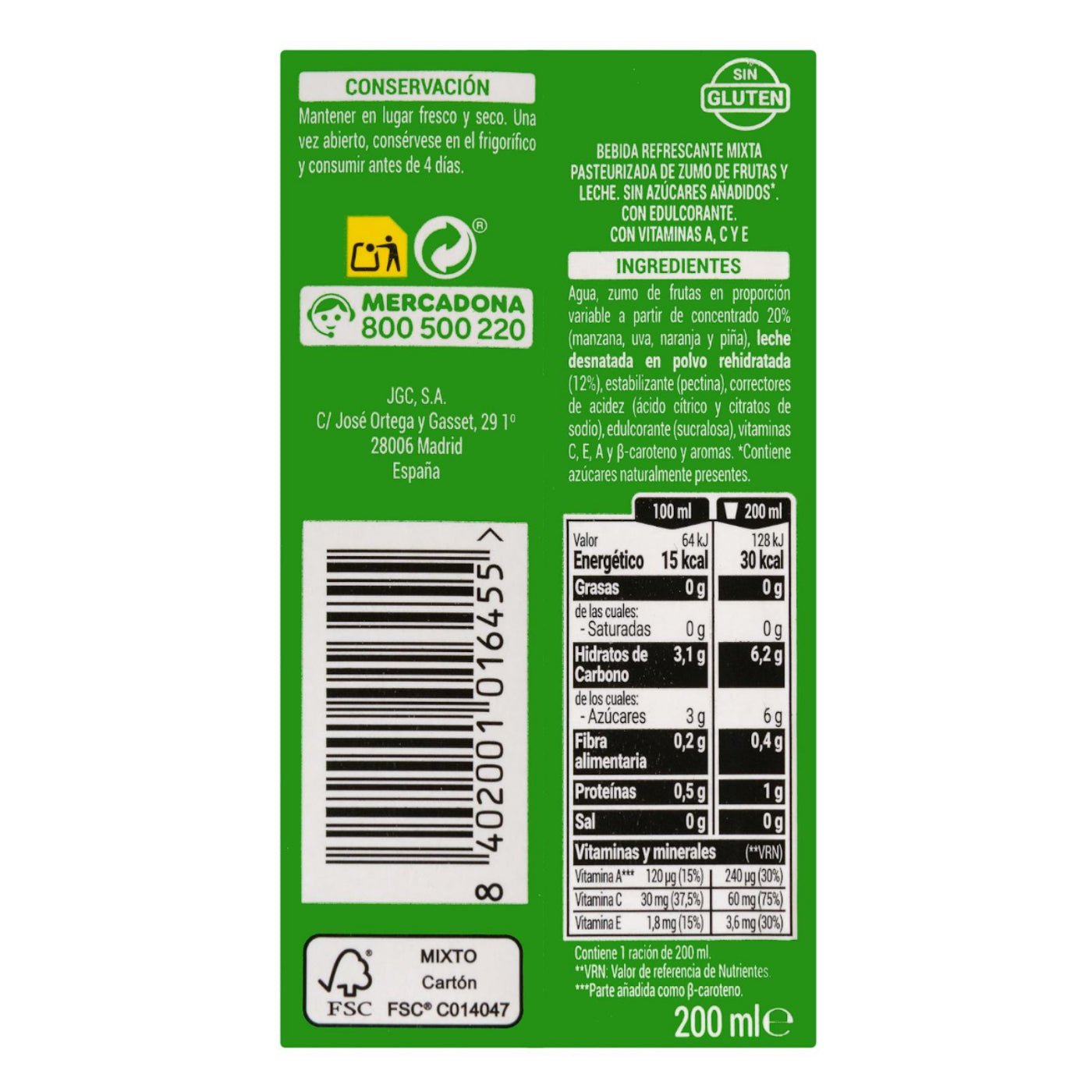Karibi gyümölcsös tejital 6x200ml – hozzáadott cukor nélkül Hacendado
