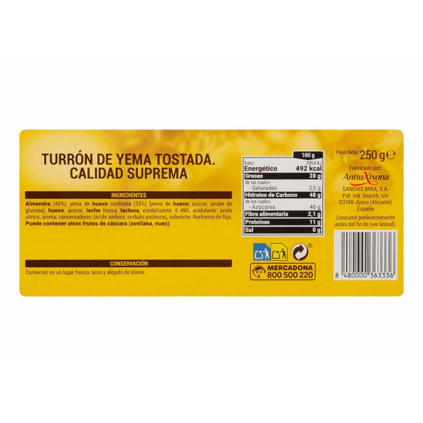 Mandula (40%), kandírozott tojássárgája (33%) [tojássárgája, cukor, glükózszirup], tojás, cukor, friss tej, laktóz, stabilizátor: E-466, savanyúságot szabályozó anyag: citromsav, aroma, tartósítószerek (szorbinsav, kálium-szorbát), színezék: annatto norbixin.